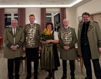 v.l. Jugenkönig Lena Schmidt,Vize König Thomas Brecht, Großer König Jochen Schrenk, Alterskönig Susi Kotzur.